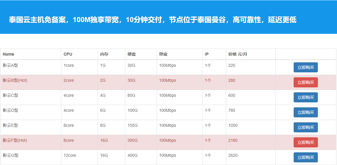 眾所周知,服務器配置不同,價格差異很大。那么泰國服務器價格是多少呢?我們推薦以下泰國資深主機商YINGSOO的幾款配置僅做參考。