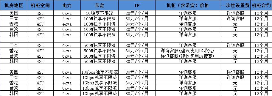 4、機(jī)柜租用總價(jià)格 = 機(jī)柜價(jià)格 + IP + 一次性設(shè)置費(fèi)。