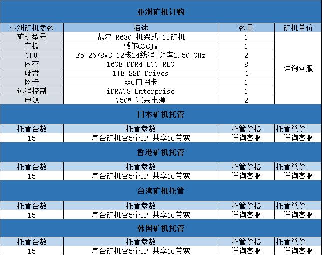 1、亞洲礦機(jī)訂購(gòu) 15 臺(tái)起,國(guó)內(nèi)交付,如需亞洲機(jī)房托管,需額外支付郵寄費(fèi)用;