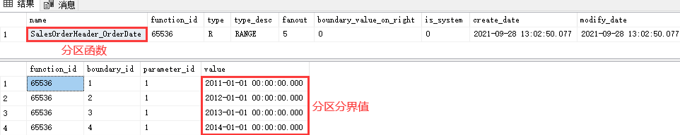 SELECT * FROM SYS.PARTITION_FUNCTIONS --分區(qū)函數(shù) SELECT * FROM SYS.PARTITION_RANGE_VALUES --分區(qū)方案