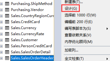 1)對(duì)著原表Sales.SalesOrderHeader點(diǎn)擊"右鍵"->"設(shè)計(jì)"。
