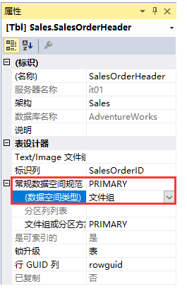 3)將數(shù)據(jù)空間類型更改為"文件組",常規(guī)數(shù)據(jù)空間規(guī)范默認(rèn)為"PRIMARY"。
