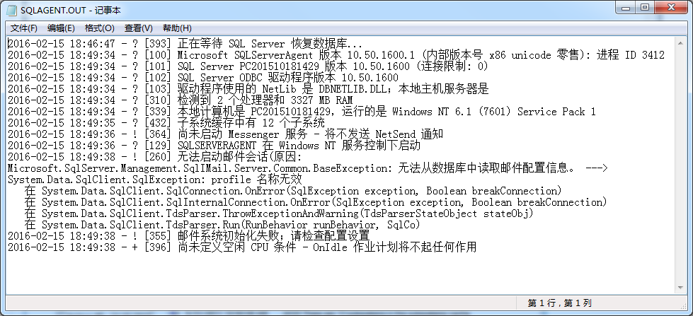 在SQL Server代理日志的開(kāi)始就有信息消息。我們每步都過(guò)一遍,簡(jiǎn)單介紹下消息的意思。