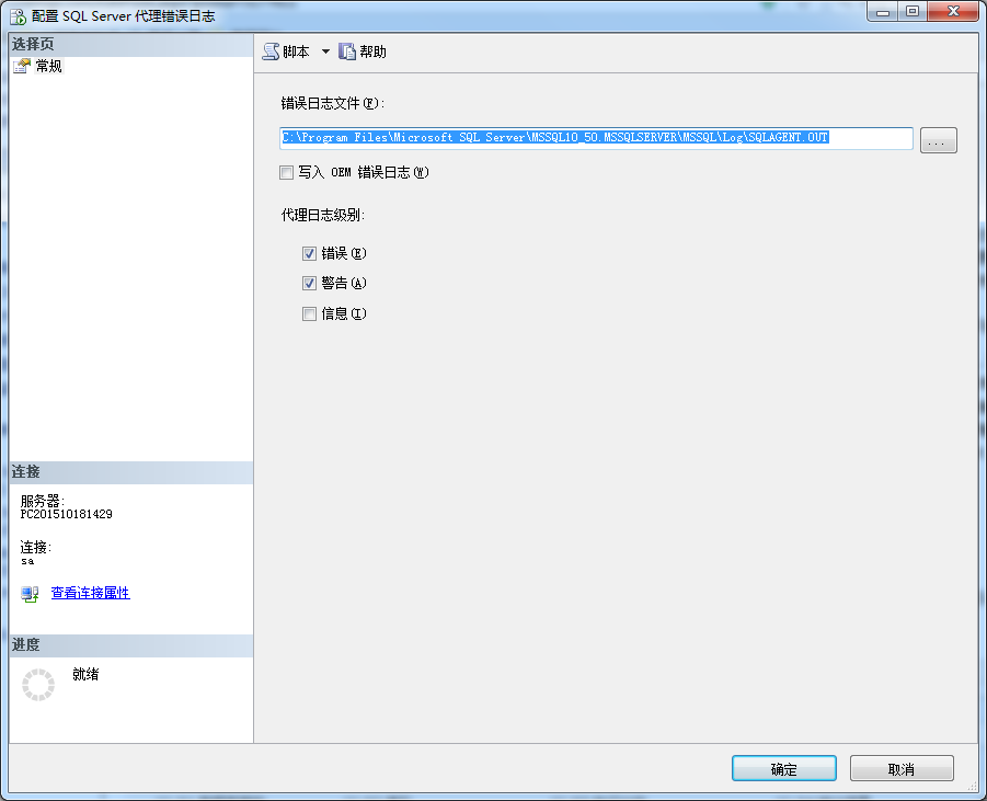 SQL Server代理維護(hù)它自己的錯(cuò)誤日志,和SQL Server錯(cuò)誤日志分開(kāi)。SQL Server錯(cuò)誤日志位置SQL Server所在目錄下的\MSSQL\Log目錄(C:\Program Files\Microsoft SQL Server\MSSQL10_50.MSSQLSERVER\MSSQL\Log,這篇文章使用SQL Server 2008R2作為默認(rèn)實(shí)例)。SQL Server錯(cuò)誤日志默認(rèn)名為ERRORLOG(沒(méi)有文件擴(kuò)展名),SQL Server代理錯(cuò)誤日志默認(rèn)名為SQLAGENTOUT。在這篇文章里,我們的大部分時(shí)間會(huì)花在SQL代理錯(cuò)誤日志,不管怎樣,你也需要看下SQL Server錯(cuò)誤日志。