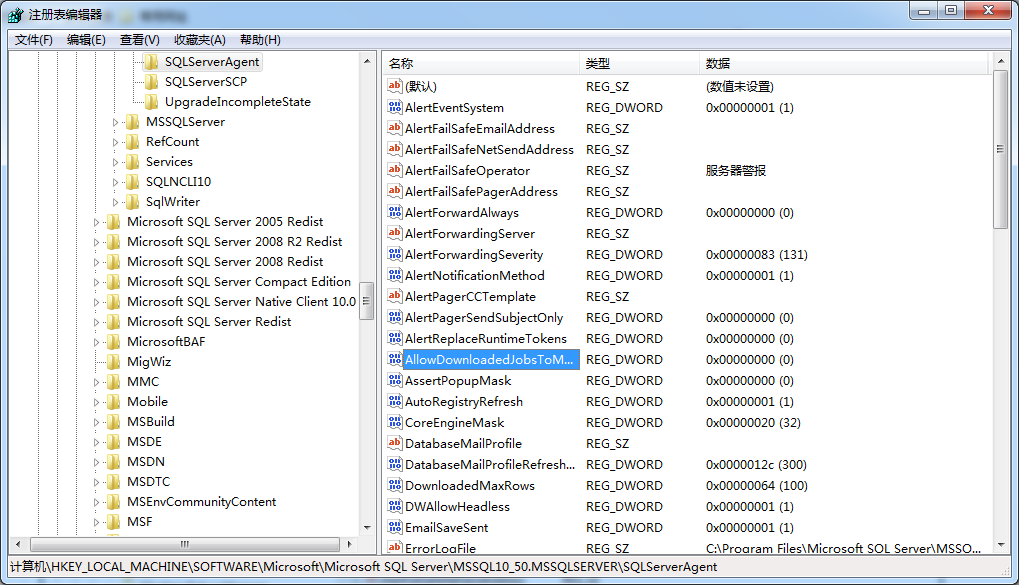 插圖9:SQL Server代理的注冊(cè)表項(xiàng)