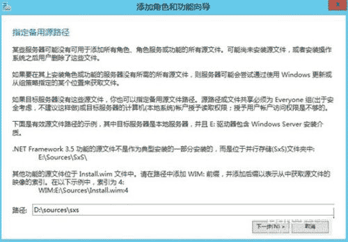 路徑按你的安裝程序位置做修改,例如:E:\win2016\sources\sxs,確定就開始安裝了。