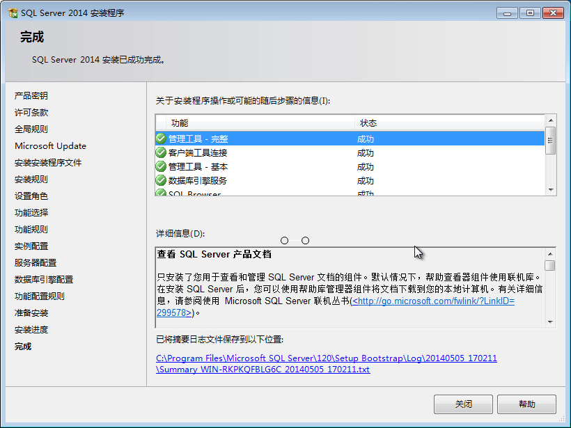 21、當(dāng)我們看到 SQL Server 2014 的各個(gè)功能選項(xiàng)窗口,就說明我們已經(jīng)的 SQL Server 2014 就安裝成功了。