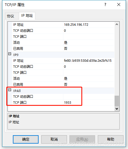 第二步:右鍵 TCP/IP 屬性,打開屬性版面,設(shè)置TCP端口(這個(gè)端口號(hào)就是你要設(shè)置的端口號(hào),不要與其他的端口號(hào)沖突哦)