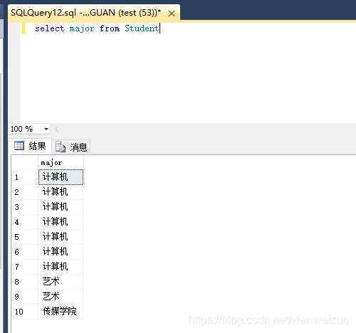 前提,存在一個(gè)數(shù)據(jù)庫(kù):JIAOGUAN(教務(wù)管理系統(tǒng)),其中有一個(gè)表:Student