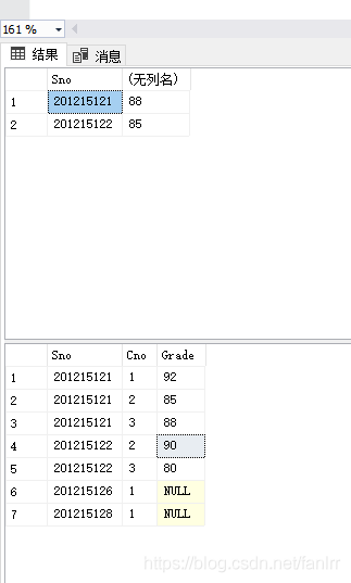 SELECT Sno,AVG(Grade) FROM SC WHERE AVG(Grade)>=80 GROUP BY Sno; SELECT * FROM SC;