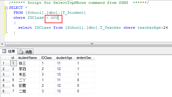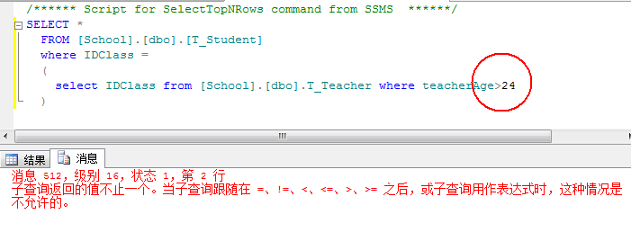 對比:當子查詢中的分那會的結果不是一個時,父查詢無法正常工作