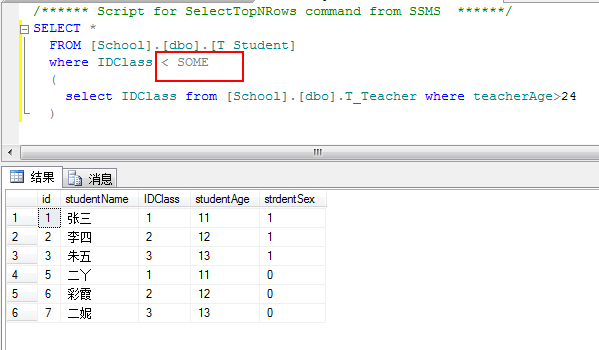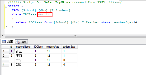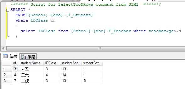 當子查詢返回一系列值時,適合帶IN的嵌套查詢。
