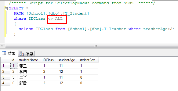where 查詢表達式 [not] in(子查詢)where 查詢表達式 比較運算符 [any|all] (子查詢)where [not] exists (子查詢)