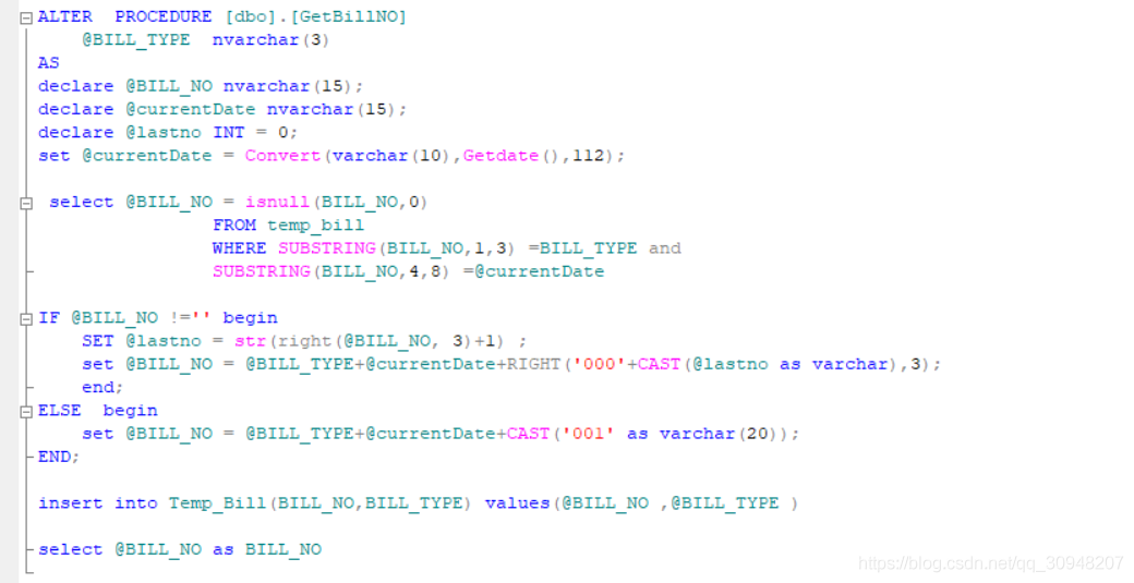 select @BILL_NO = isnull(BILL_NO,0) FROM temp_bill WHERE SUBSTRING(BILL_NO,1,3) =BILL_TYPE and SUBSTRING(BILL_NO,4,8) =@currentDate