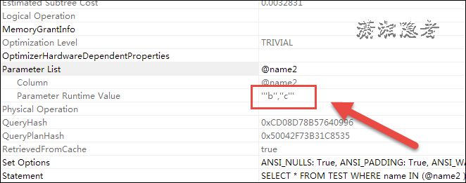 為什么出現(xiàn)了這樣的結(jié)果呢? 查了大量的官方文檔,沒(méi)有看到關(guān)于這個(gè)問(wèn)題的介紹和解釋。如果一定要解釋上面現(xiàn)象的情況的話,那么是因?yàn)镾ELECT * FROM TEST WHERE name IN (@name2 ); 其實(shí)轉(zhuǎn)化為了SELECT * FROM TEST WHERE name =@name2; 也就是說(shuō),上面SQL并不會(huì)按你所“設(shè)想”的邏輯運(yùn)算。而是做了一個(gè)轉(zhuǎn)換,為什么說(shuō)是這樣的一個(gè)轉(zhuǎn)換呢? 當(dāng)然這也是一個(gè)猜想,上面構(gòu)造的例子也是為了側(cè)面驗(yàn)證這個(gè)猜想,另外,上面兩個(gè)SQL實(shí)際執(zhí)行計(jì)劃的參數(shù)列表(Parameter List)也側(cè)面印證了這個(gè)猜想。如果執(zhí)行計(jì)劃解析成我們想要的結(jié)果,那么Parameter List應(yīng)該是'b' 和‘c'