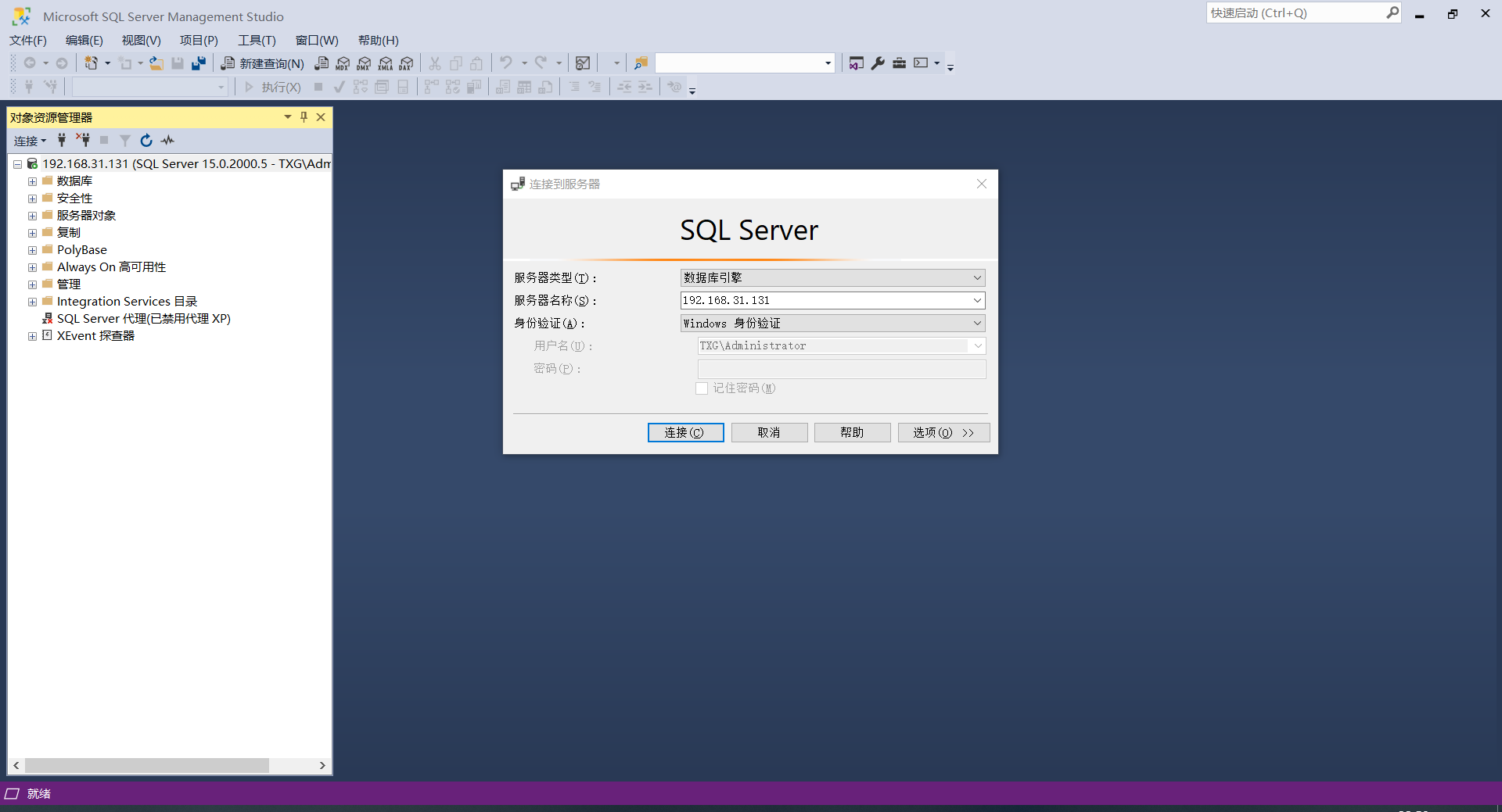 3、在SSMS數(shù)據(jù)庫(kù)管理工具中選擇Windows身份驗(yàn)證。