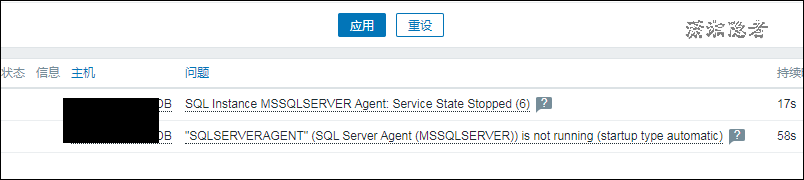 手工測試驗證,關(guān)掉SQL Agent服務(wù)后,Zabbix就會告警,截圖如下所示: