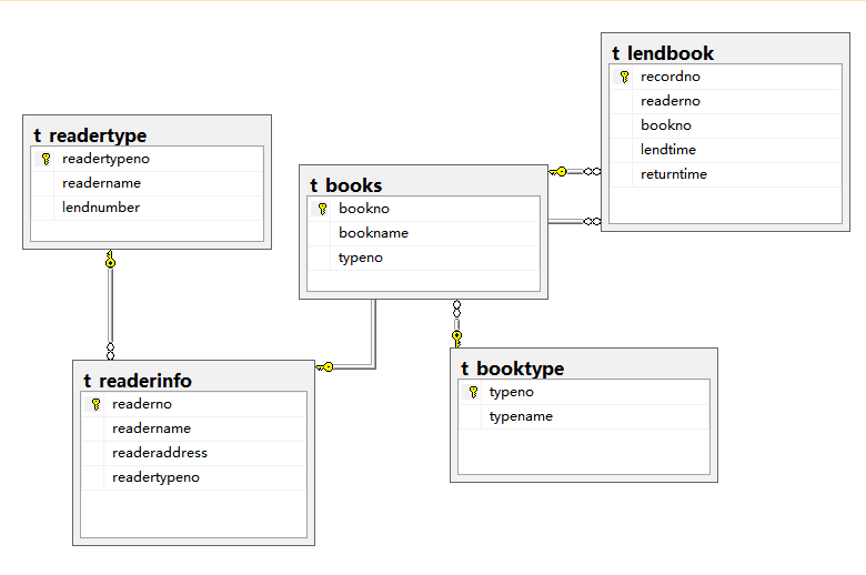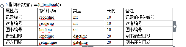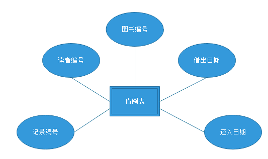 借閱表:主要包括記錄編號(hào),讀者編號(hào),圖書編號(hào),借出日期,還入日期。
