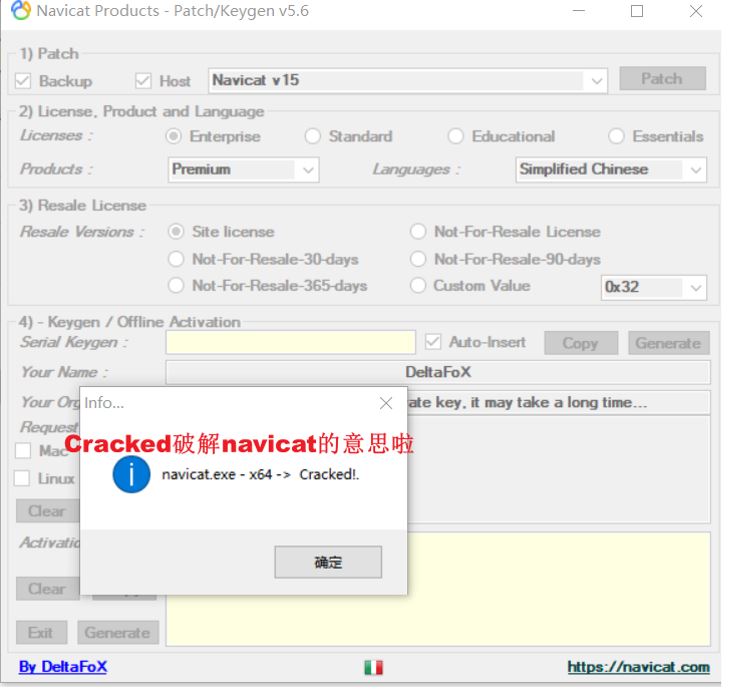 ② 生成注冊碼,然后打開從官網(wǎng)下載安裝好的Navicat,輸入注冊碼: