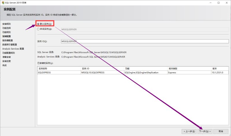 11.勾選默認實例,再單擊下一步