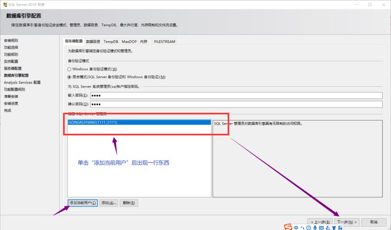 13.選擇混合模式,填寫登錄密碼