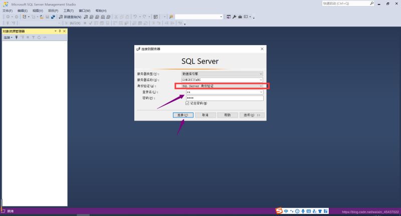 登錄名為sa,密碼為你之前設置的密碼