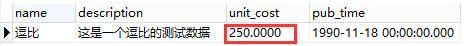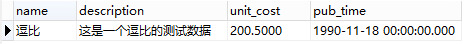 VALUES('逗比','這是一個逗比的測試數(shù)據(jù)',200.5,'1990-11-18')