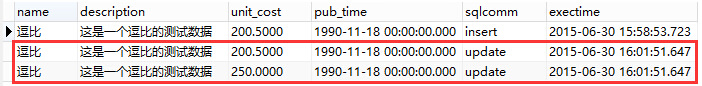新增的兩個字段sqlcomm和exectime分別記錄執(zhí)行命令(insert、update和delete)和執(zhí)行時間