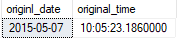 declare @Time time='00:00:00.000' declare @Date date='0001-01-01' select dateadd(day, 735724, @Date) as originl_date , dateadd(ms,36323187, @Time) as original_time
