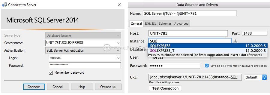 如果端口號(hào)與實(shí)例名稱沖突,則在jTds驅(qū)動(dòng)程序中,實(shí)例名稱將優(yōu)先于端口號(hào),而相反的操作將在Microsoft驅(qū)動(dòng)程序中發(fā)生。為避免混淆,只需刪除端口號(hào)即可。如果您強(qiáng)烈希望指定端口號(hào),請單擊“ 自動(dòng)設(shè)置”按鈕(位于“實(shí)例”字段右側(cè))以自動(dòng)設(shè)置端口號(hào)。但請記住,如果重新啟動(dòng)服務(wù)器,可以更改端口號(hào)。