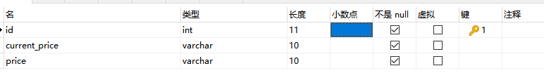 `current_price` varchar(10) NOT NULL,