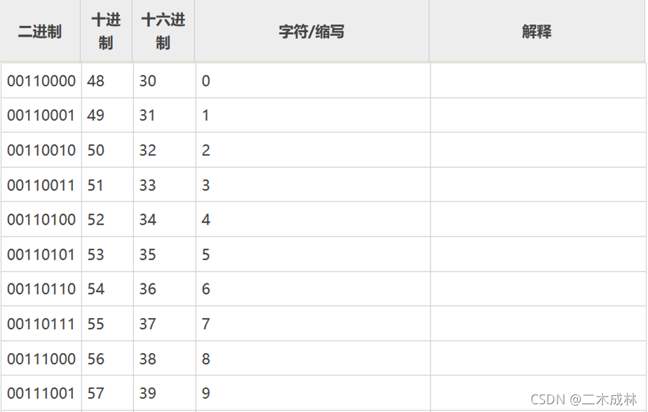 這是為什么呢?因為字符串類型的數(shù)字比較大小是從第一位開始比較其在字符編碼中對應的數(shù)值大小,相等則繼續(xù)比較第二位,不相等就是數(shù)值大的為大。其中數(shù)字字符對應的ASCII碼值如下: