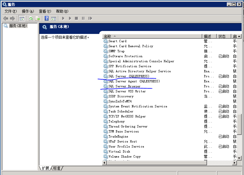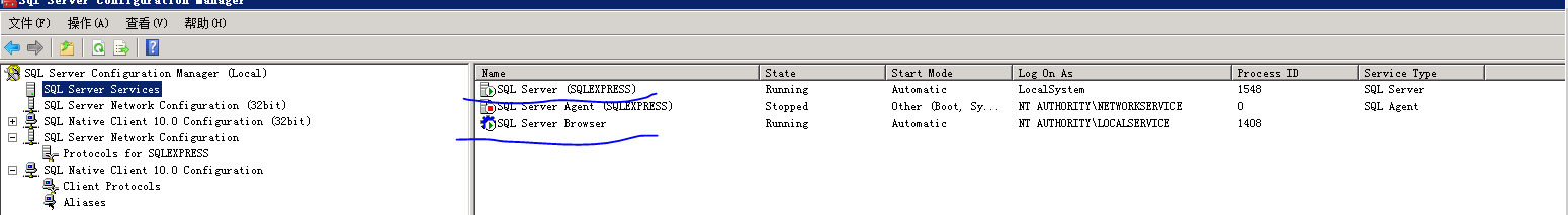1.打開sql server configuration manager 檢查圖上這兩項(xiàng)是不是在running狀態(tài)
