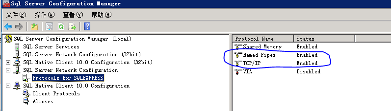 2.接著檢查這兩項(xiàng)是不是都是Enable, 我之前試了好多次,一直都是只把TCP/IP設(shè)為Enabled, 一直都不行,后來在一個(gè)帖子里看到也要把Name Pipes設(shè)為Enabled, 我改了一下,后來就好了,不過我也不知道是不是因?yàn)檫@個(gè),反正就都設(shè)上算了
