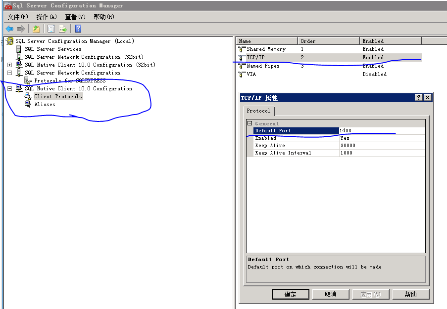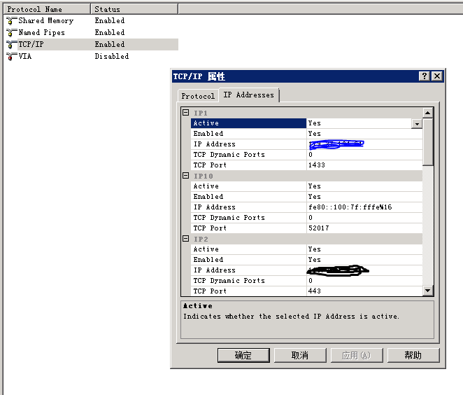 然后關(guān)掉TCP/IP屬性,打開下面這個(gè)選項(xiàng),照圖設(shè)置,把這個(gè)也設(shè)置為1433