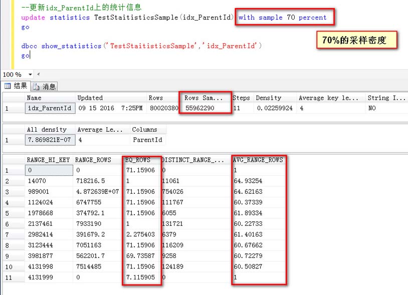 指定一個(gè)采樣密度的方式更新統(tǒng)計(jì)信息(70%采樣)