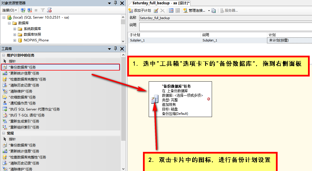 3.拖動(dòng)工具箱,創(chuàng)建維護(hù)計(jì)劃的任務(wù)