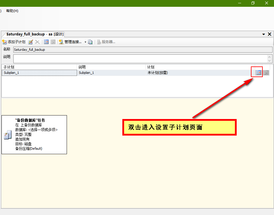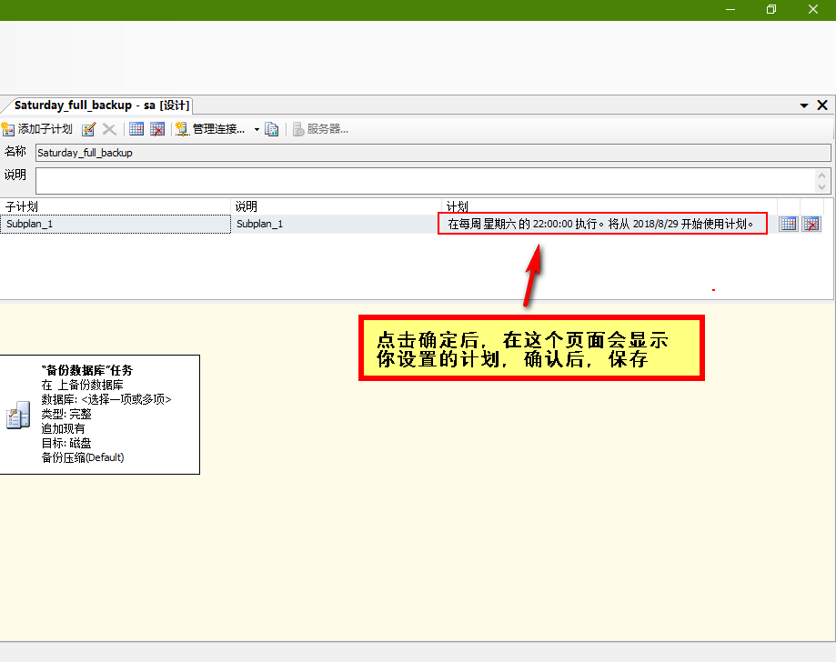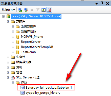 SQL Server 代理 -->作業(yè) -->Saturday_full_backup.Subplan_1(你自己剛創(chuàng)建的備份策略)