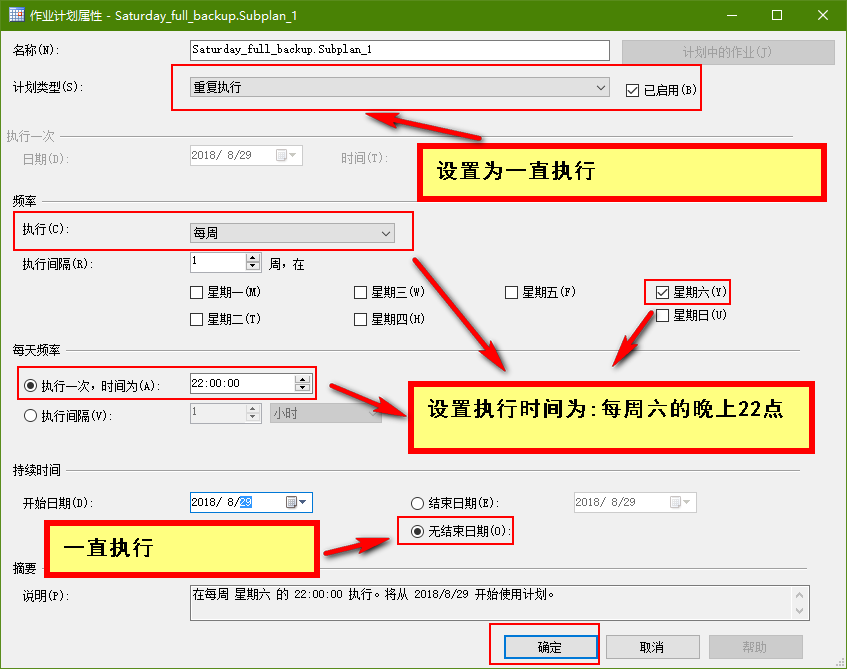 設(shè)置執(zhí)行時(shí)間為:每周的周六,晚上22點(diǎn)