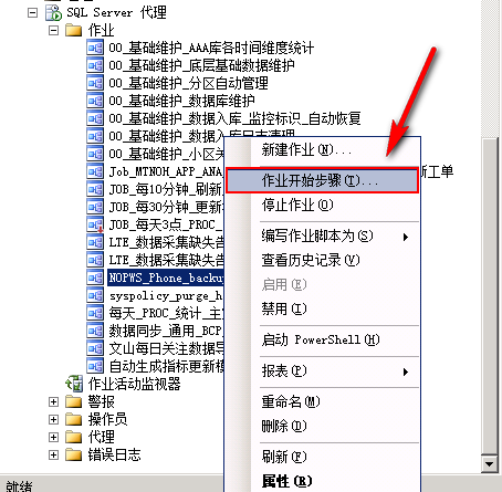 7.右鍵點(diǎn)擊該作業(yè),選擇"作業(yè)開始步驟"