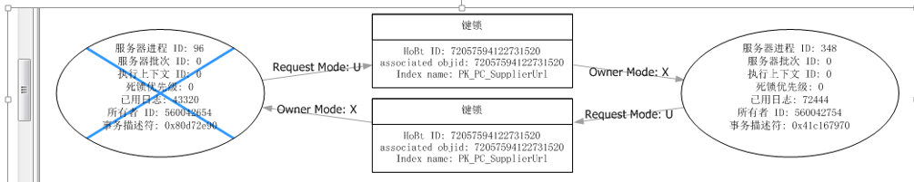 上面死鎖是由于批量更新出現(xiàn)PAG范圍鎖, 雙方進程在同一分區(qū)索引資源上。ID96,348都請求想獲取更新鎖(U),各占排它鎖(x)不釋放,直到鎖超時。