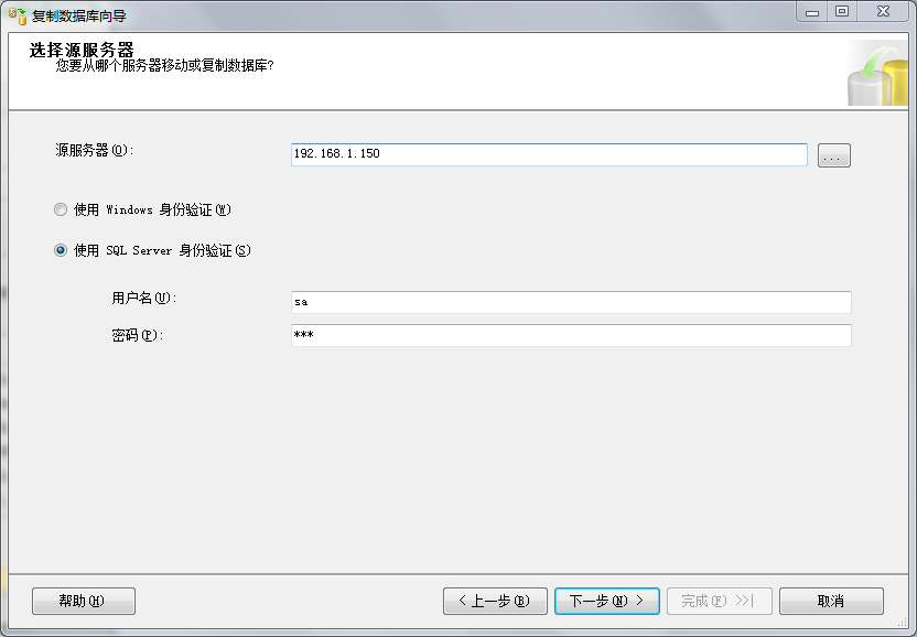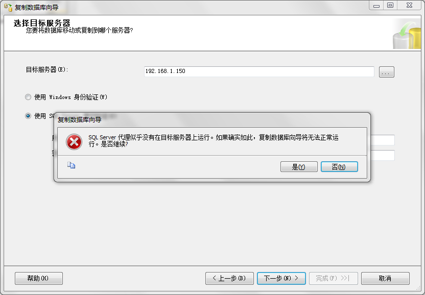 依次選擇源數(shù)據(jù)庫服務器與目標數(shù)據(jù)庫服務器,和SSMS的任務差不多,看來跨服務器復制數(shù)據(jù)庫也并不復雜,點擊下一步,提示