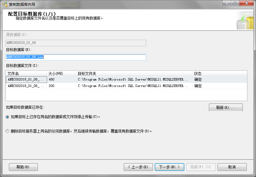 選擇目標數(shù)據(jù)庫的名稱與實體位置,然后接下來就是一路下一步(中間可以選擇輸出到Windows日志,我試過不選的時候可以在SQL Server日志看到結果,選了之后就只能在Windows日志中看了)