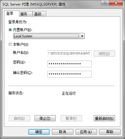 OK,觀察一下SQL Server代理的用戶(在SQL Server配置管理器可以看到,同樣可以在系統(tǒng)服務中查到)是NT SERVICE\SQLSERVERAGENT。