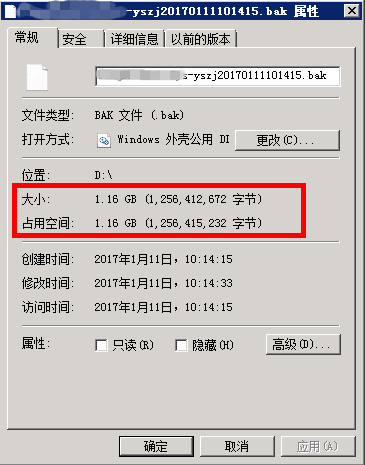 備份成功后,備份的bak文件有1.16G大?。?/p>