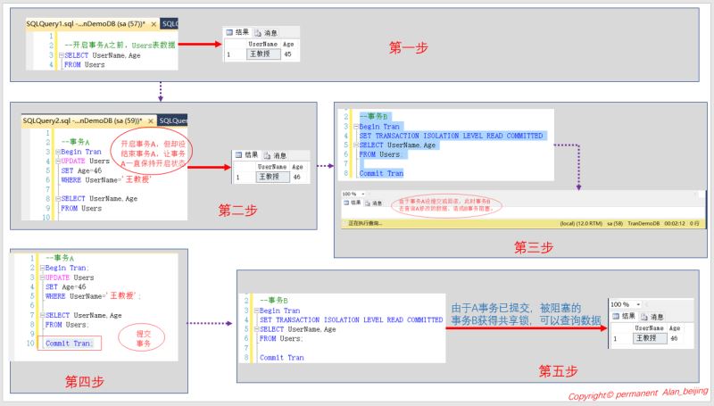 已提交讀(READ COMMITTED)指只能讀取已提交事務(wù)的數(shù)據(jù),是防止數(shù)據(jù)臟讀的最低隔離級(jí)別,也是SQL Server默認(rèn)的隔離級(jí)別,它要求讀操作必須獲得共享鎖后
