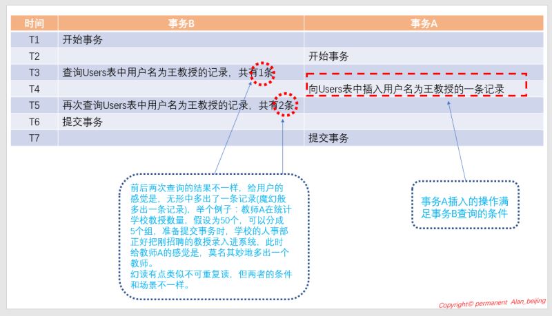 務(wù)插入新行,并且新行能滿足讀操作的查詢過濾條件,那么這些新行也會(huì)出現(xiàn)在第二次讀操作返回的結(jié)果中,這些新行稱為幻影子,也叫做幻讀。