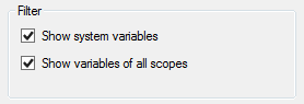 打開Event Handlers Tab,在Variables 窗體中,點擊網(wǎng)格選項(Grid Options)按鈕,打開Variable Grid Options 窗體,在Filter選項中勾選"Show system variables",點擊“OK”,返回到Variables窗體: