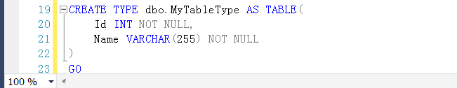 CREATE TYPE dbo.MyTableType AS TABLE(