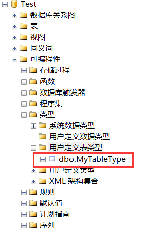 定義的TableType可以在用戶自定義表類型中找到